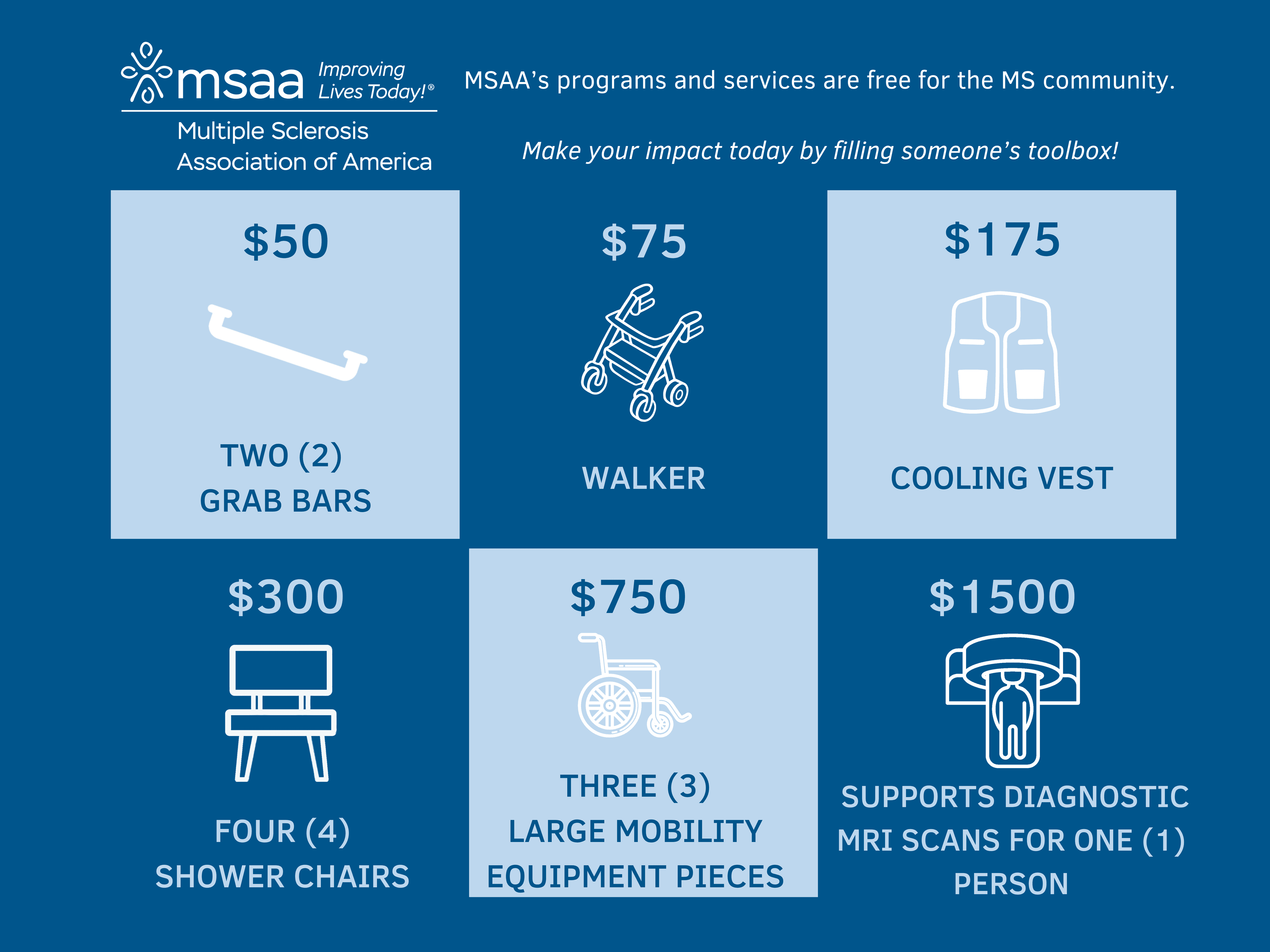 When you’re living with MS, having the right tools can change everything. Your gift improves lives today by helping fill someone’s toolbox with knowledge, comfort, and resources.